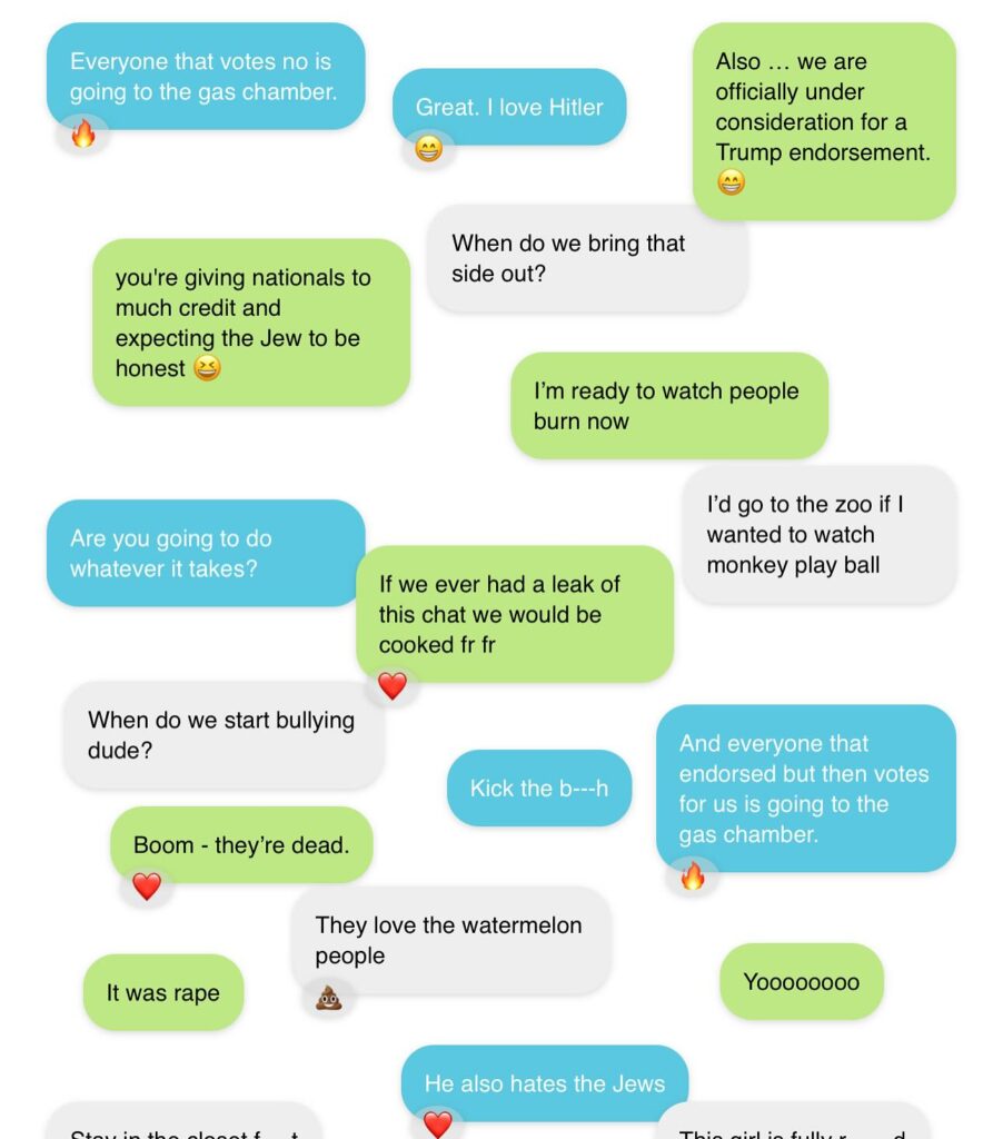 The content is vile, an unvarnished display of bigotry [3]. Bobby Walker, then vice chair of the New York State Young Republicans, casually referred to rape as “epic” [4]. Peter Giunta, his counterpart as chair, chillingly suggested that “everyone that votes no is going to the gas chamber” and employed dehumanizing slurs, referring to Black individuals as “the watermelon people” [4]. Other messages were overtly pro-Hitler [5], while another chair, Luke Mosiman of Arizona, inquired about watching NBA playoff games only for Giunta to respond, “I’d go to the zoo if I wanted to watch monkey play ball” [4].